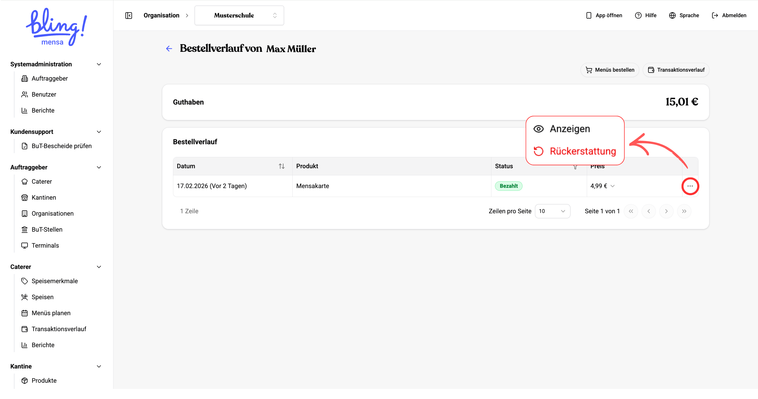 Fällt ein Schultag aus, können Bestellungen jetzt über das Dashboard erstattet werden. Das Guthaben wird automatisch auf die Wallet der Eltern zurückgebucht.