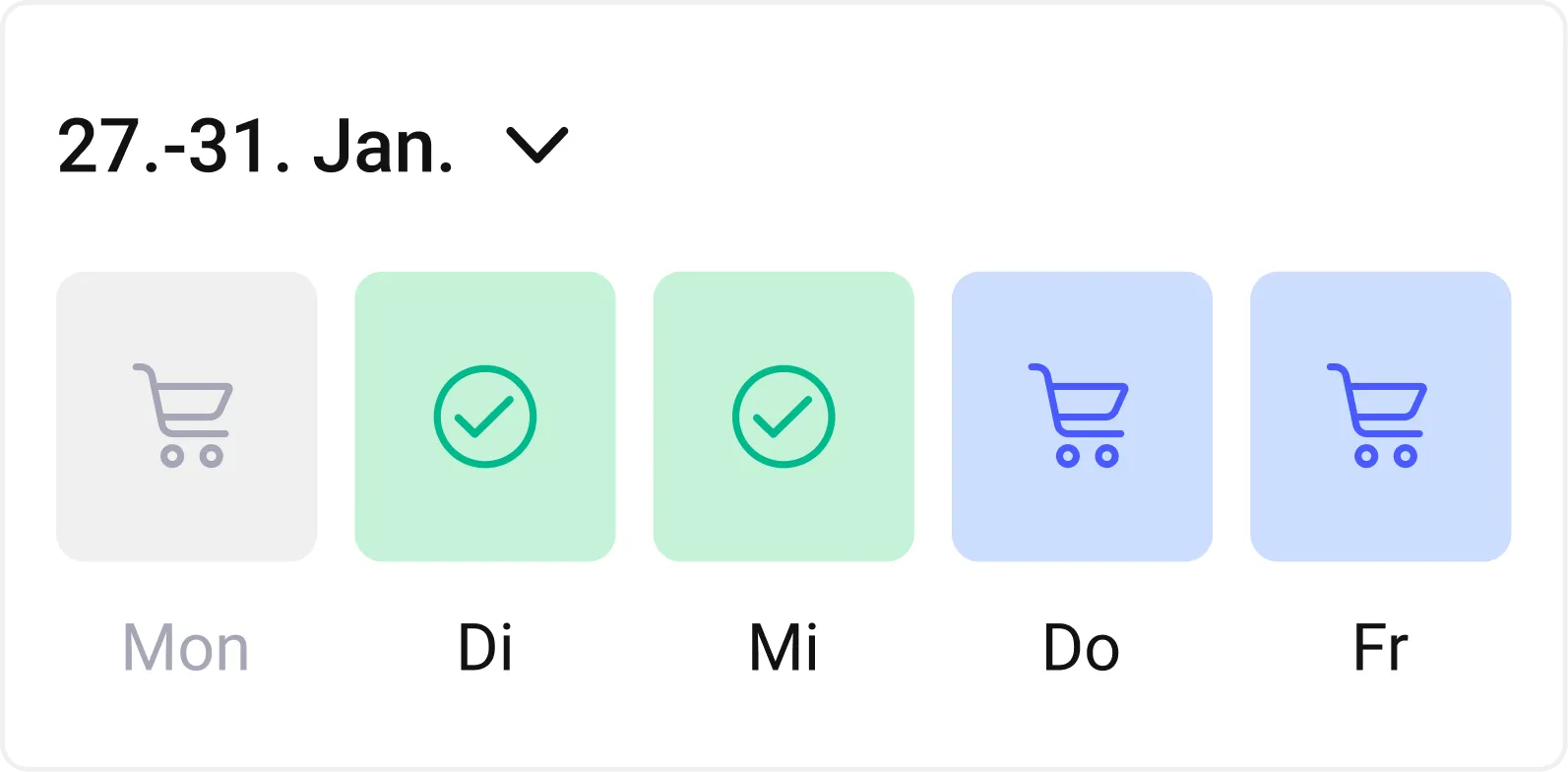 Im Dashboard erfassen Sie die Speisepläne mit wenigen Klicks und schalten diese für Bestellungen frei.
